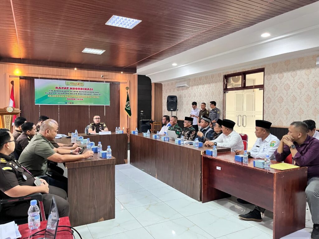 Kegiatan tersebut dipimpin langsung oleh Plt. Kepala Kejaksaan Negeri Mandailing Natal, Bani Immanuel Ginting, S.H., M.H., dan dihadiri oleh unsur Forum Koordinasi Pimpinan Daerah (Forkopimda), Kementerian Agama, Kepolisian, TNI, MUI, FKUB, Dinas Pendidikan, Dukcapil, serta para pemangku kepentingan lainnya.
