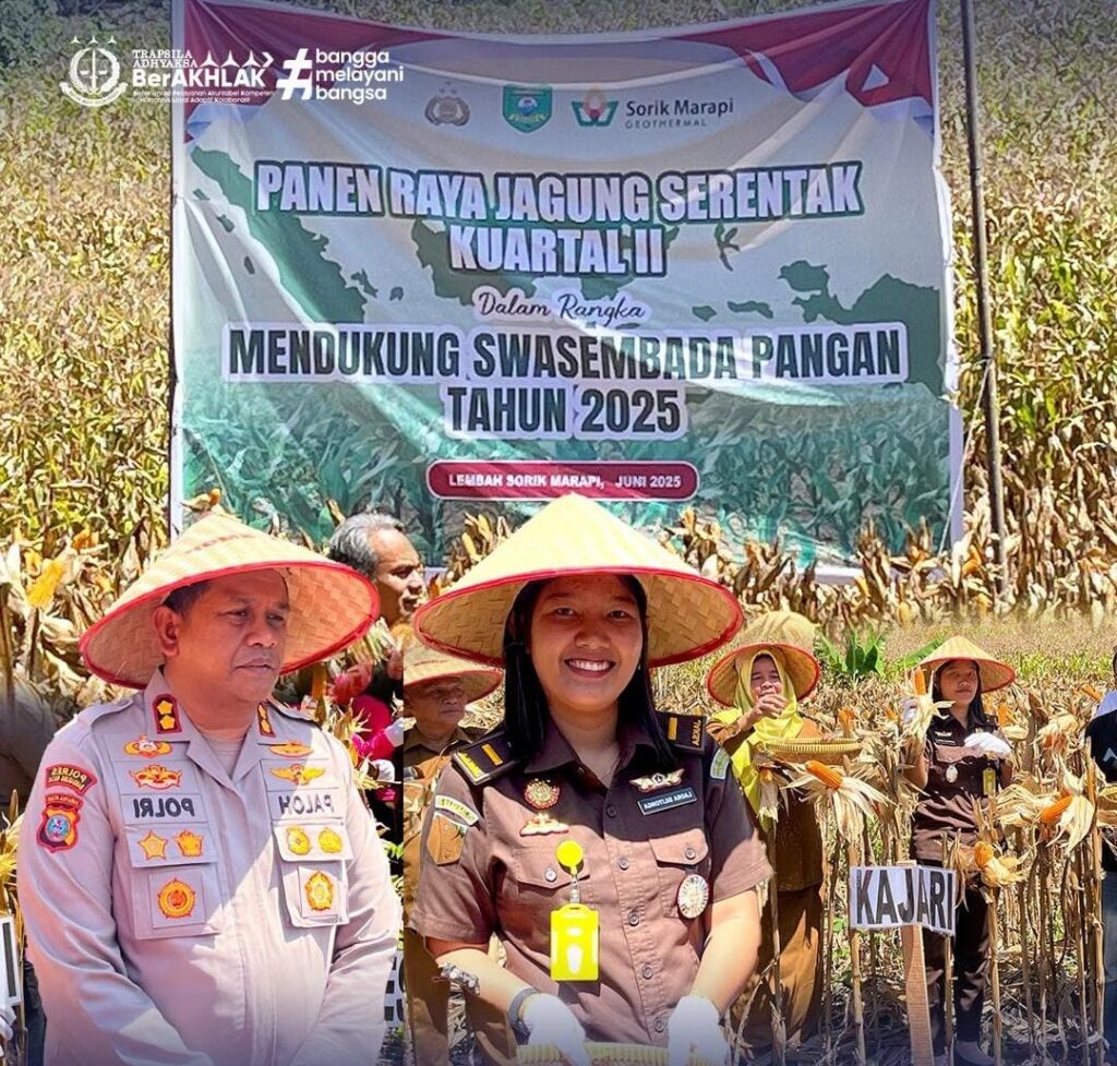 Panen Raya Jagung Serentak Kuartal II dilaksanakan pada Selasa (24/6) sekitar pukul 09.00 WIB di lahan pertanian seluas ±3 hektare milik Kelompok Tani Putra Aek Singolot, Desa Purba Baru, Kecamatan Lembah Sorik Marapi, Kabupaten Mandailing Natal. Kegiatan ini merupakan bagian dari upaya mendukung program swasembada pangan nasional yang dicanangkan pemerintah.