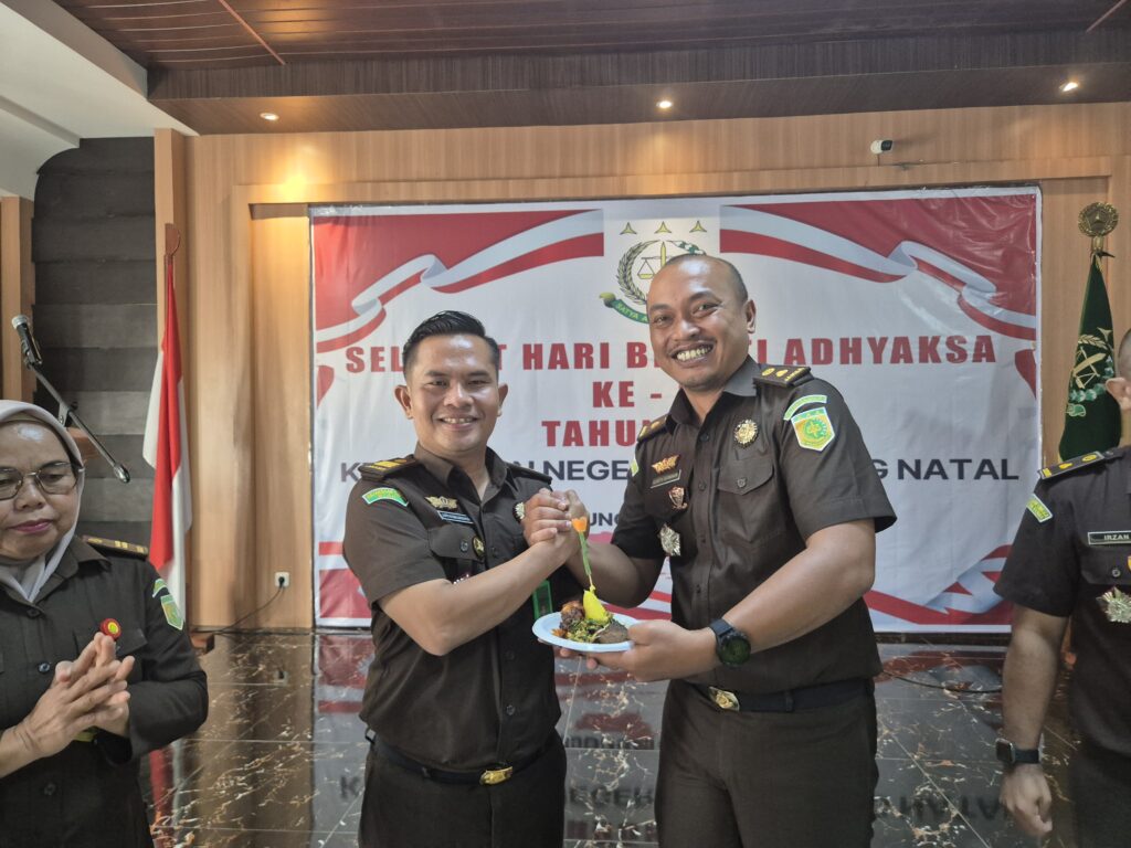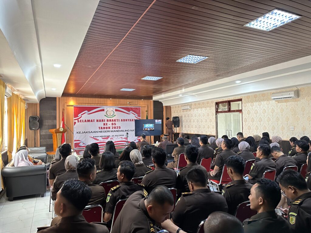 Panyabungan, 22 Juli 2025 — Kejaksaan Negeri Mandailing Natal menggelar peringatan Hari Bhakti Adhyaksa (HBA) ke-65 dengan khidmat dan penuh semangat kebersamaan, bertempat di Aula Kantor Kejaksaan Negeri Mandailing Natal pada hari Selasa, 22 Juli 2025, pukul 08.30 WIB.